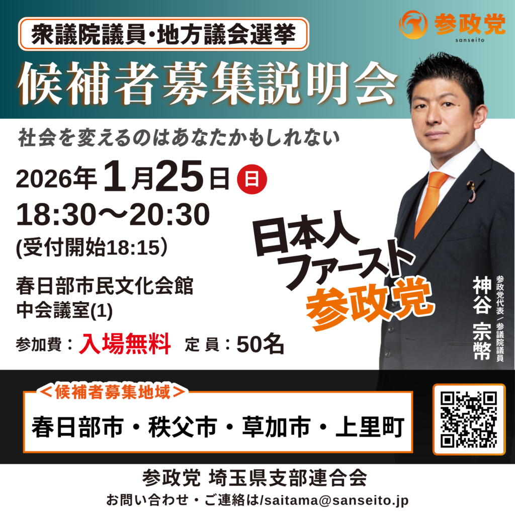 参政党埼玉県支部連合会では、一緒に活動して頂ける党員・サポーターを募集しています。