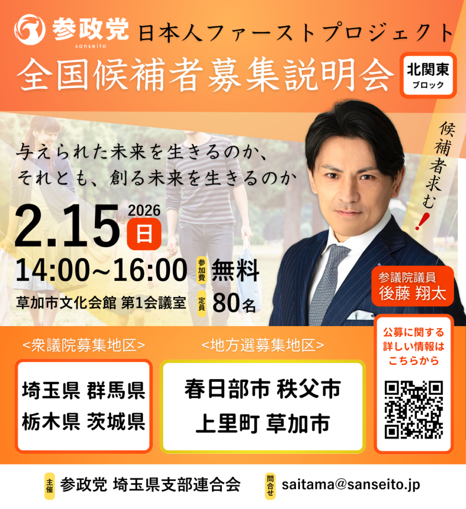 参議院議員 後藤翔太による候補者募集説明会が開催されます。