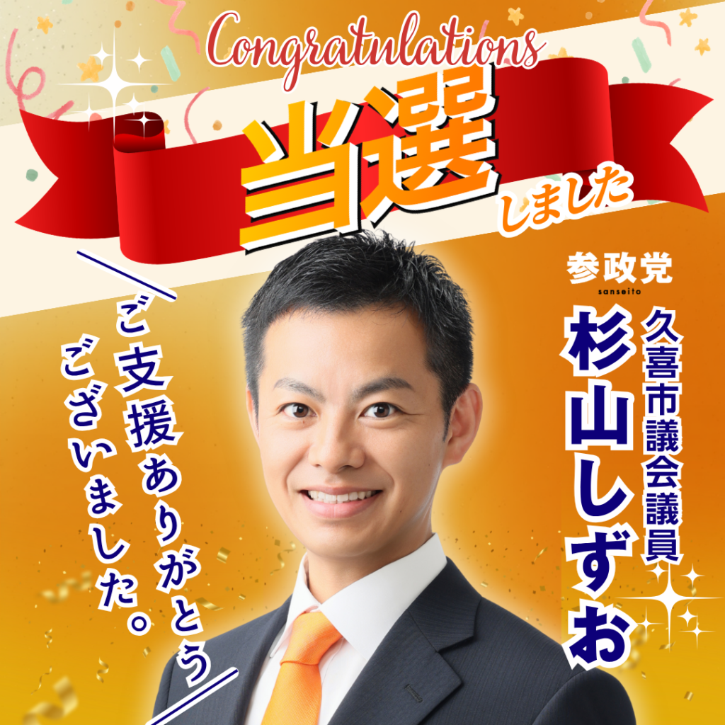 また、杉山しずお議員のご活躍を心からお祈り申し上げます。
