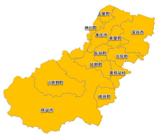 第11支部:秩父市、本庄市、深谷市、秩父郡(横瀬町、皆野町、長瀞町、小鹿野町、東秩父村)、児玉郡(美里町、神川町、上里町)、大里郡(寄居町)